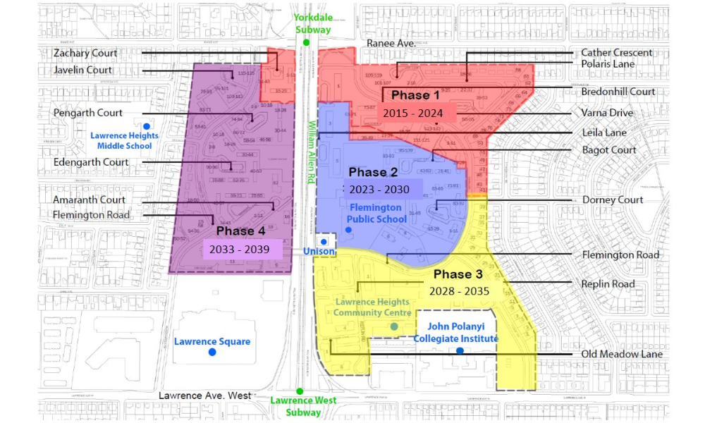 The Lawrence Heights revitalization project entails replacing 1,208 TCHC units and building over 4,000 new market units, along with new parks, retail space, and roads connecting Lawrence Heights to the surrounding community. It is currently TCHC’s largest revitalization project.
